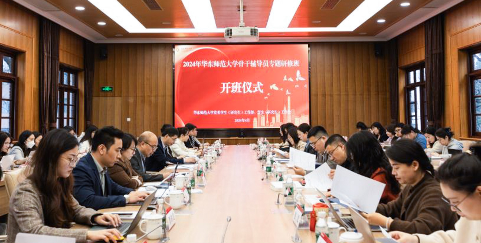 近日,为深入学习贯彻全国两会精神,贯彻落实习近平总书记关于教育的重要论述,进一步推动学校辅导员队伍专业化、职业化建设,华东师大2024年骨干辅导员专题研修班开班仪式暨春季学期形势与政策课第一次集体备课会在普陀校区举行。校党委书记梅兵,校党委副书记、副校长顾红亮,党委学生(研究生)工作部负责人,院系学工负责人代表、教师代表及研修班学员等参加活动。2024年骨干辅导员专题研修班开班仪式暨春季学期形势与...