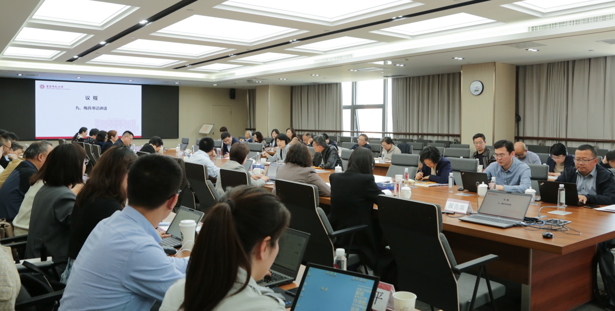 4月10日下午,华东师大在闵行校区召开书记例会,对近期重点工作进行通报和部署。校党委书记梅兵,校党委副书记、副校长顾红亮,校党委副书记孟钟捷出席会议。会议由孟钟捷主持。书记例会部署近期重点工作 会上,顾红亮传达了中央开展党纪学习教育有关部署要求;孟钟捷通报了近期意识形态、网络安全、统战和依法治校等相关工作;会议还通报了近期纪检巡察工作情况、2024年就业情况分析等。校党委书记梅兵讲话 梅兵在讲...