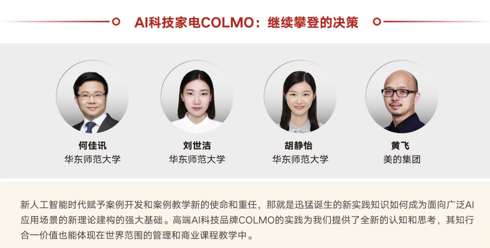 4月12日,“2023中国工商管理国际最佳案例奖”评选获奖案例结果揭晓。经由哈佛商学院、加拿大毅伟商学院、欧洲工商管理学院、欧洲案例交流中心、中欧国际工商学院组成的国际专家委员会最终评审,华东师大二级教授、学科带头人何佳讯教授团队撰写的科创案例《AI-powered Home Appliances: COLMO's Strategic Decisions》(AI科技家电COLMO:继续攀登的决策,作者何佳讯、刘世洁、胡静怡、黄飞)获得一等奖。何佳讯、刘世洁、...