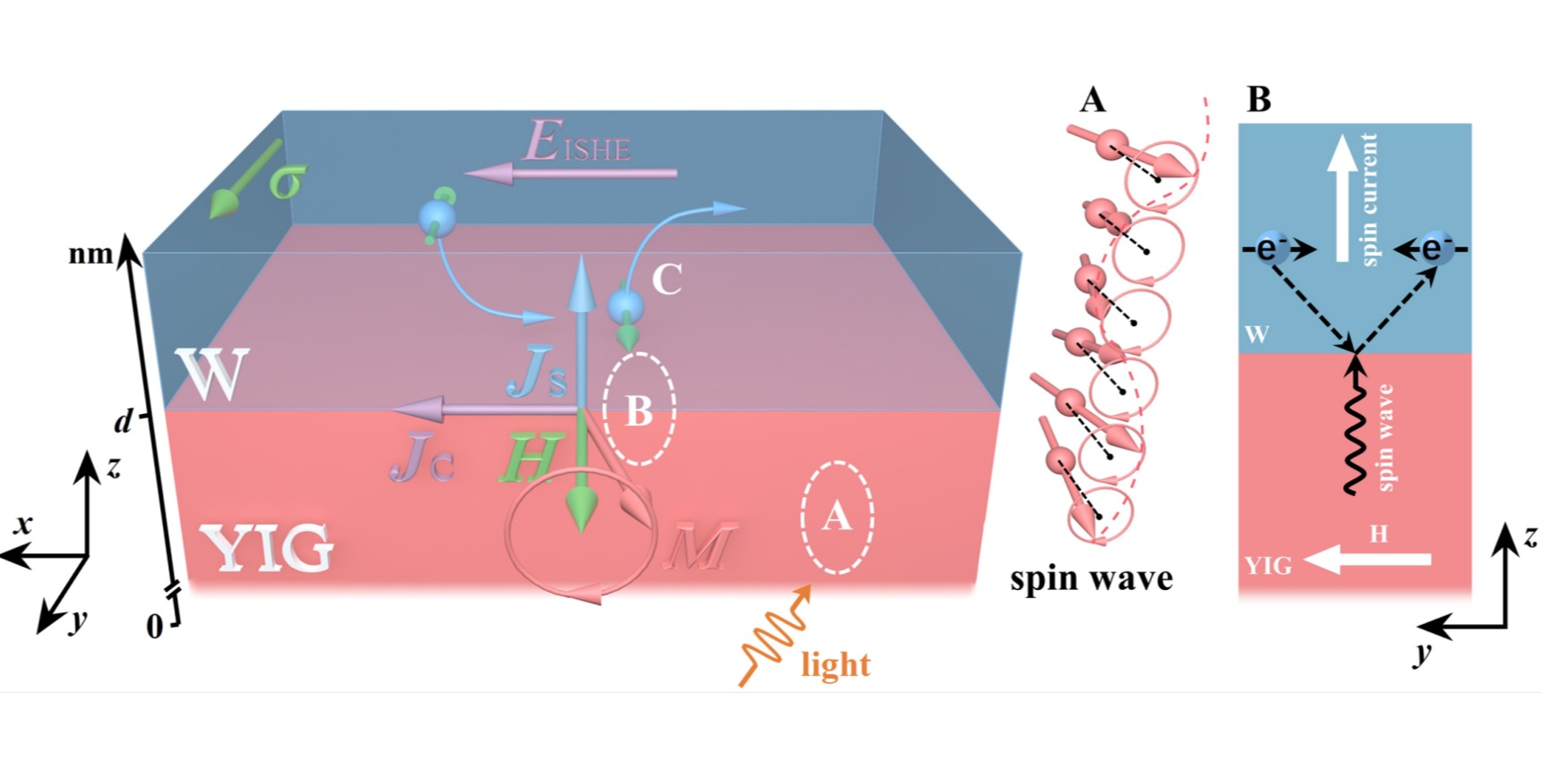 近日,永利皇宫登录官网极化材料与器件教育部重点实验室孙琳研究团队利用自主搭建的自旋光伏效应测量系统在W/YIG双层膜中观察到了光生自旋流。通过实验观测结合器件仿真手段,澄清了光生自旋流起源的争议,揭示了自旋光伏效应的微观机制。研究成果以“Origin of the light-induced spin currents in heavy metal/magnetic insulator bilayers”为题,于2024年5月22日在线发表于Nature Communications。图1.《自然通讯》刊发华东...
