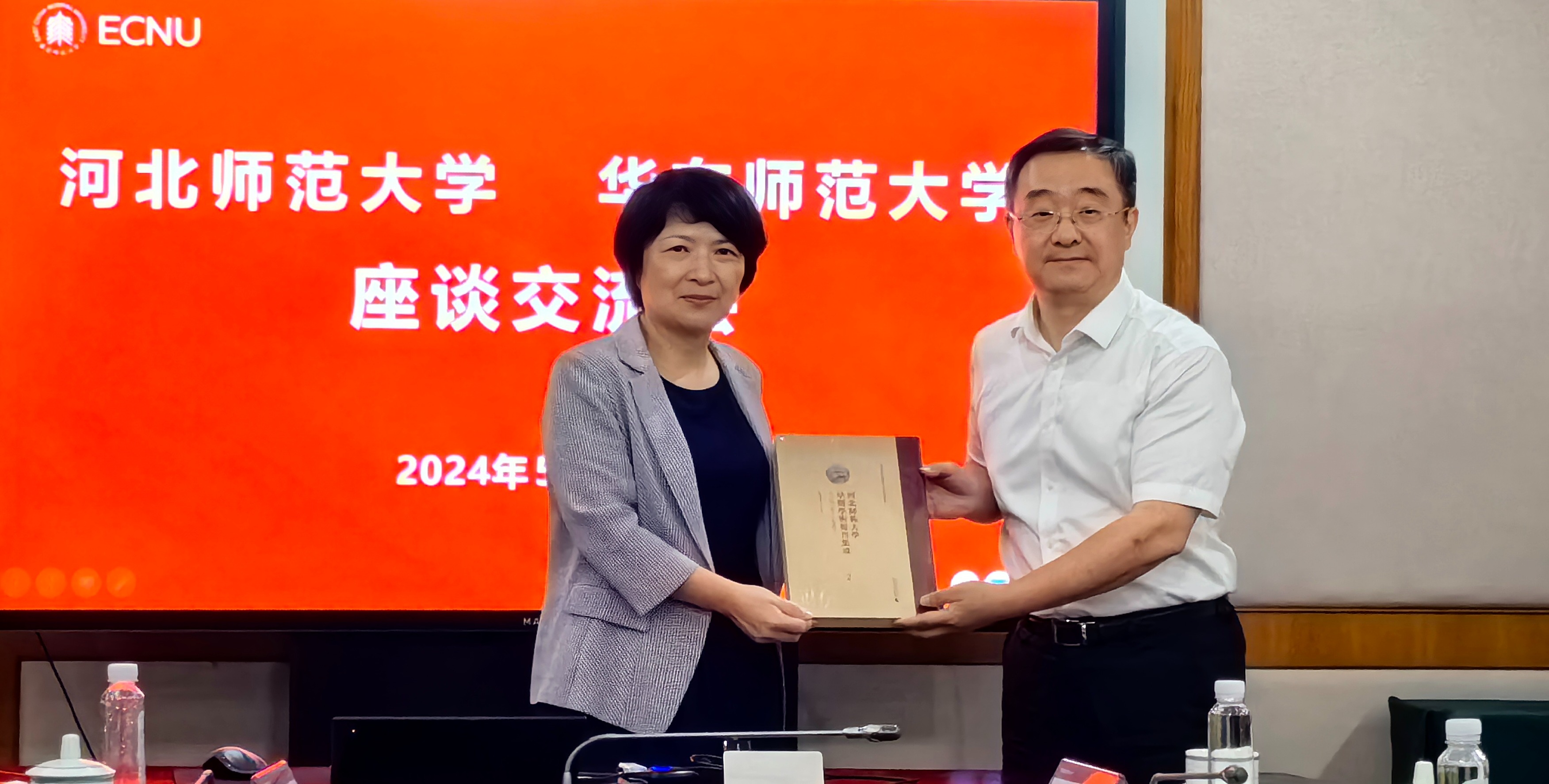 5月30日,校党委书记梅兵会见了来访的河北师范大学党委书记黄晟一行。双方围绕党建工作、学科交叉融合、人才培养、教育信息化转型等方面进行了深入交流。校党委副书记孟钟捷主持座谈交流会。河北师范大学代表团来校访问交流 黄晟感谢华东师大的热情接待。他表示,华东师大在学科建设、基层党建和人才培养等方面经验丰富、理念先进,此次交流访问收获颇丰,期待两校继续深化合作交流。 梅兵对河北师大代表团来访表示欢...