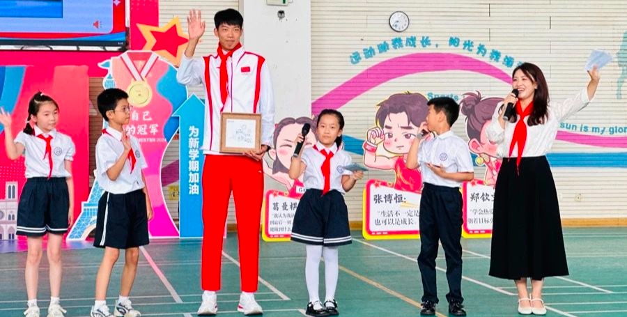 武术、足球、啦啦操、花样跳绳、游泳、田径……一群可爱的萌娃运动员们闪亮登场!9月2日,迎着清晨的第一缕阳光,华东师大附属紫竹小学热闹非凡,“奥运励远志,灵动向未来”2024学年第一学期开学典礼暨华东师大教育集团大中小幼思政一体化活动举办。三位刚从巴黎奥运会凯旋的国家田径队运动员、华东师大在读学生葛曼棋、林雨薇以及秦伟搏,亮相华东师大附属紫竹小学,与小朋友们进行了“面对面”交流,因为他们还有一个身...